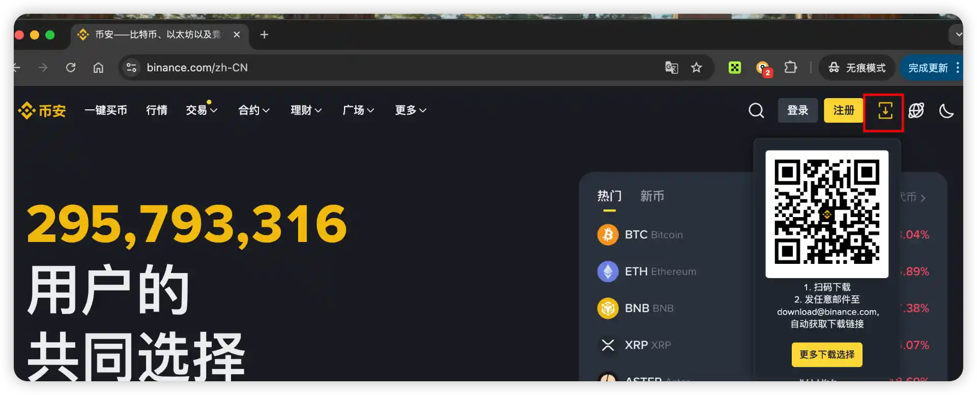 访问BN 官网(网页版需要梯子,请自行解决,日本或者香港节点即可)获取下载链接: