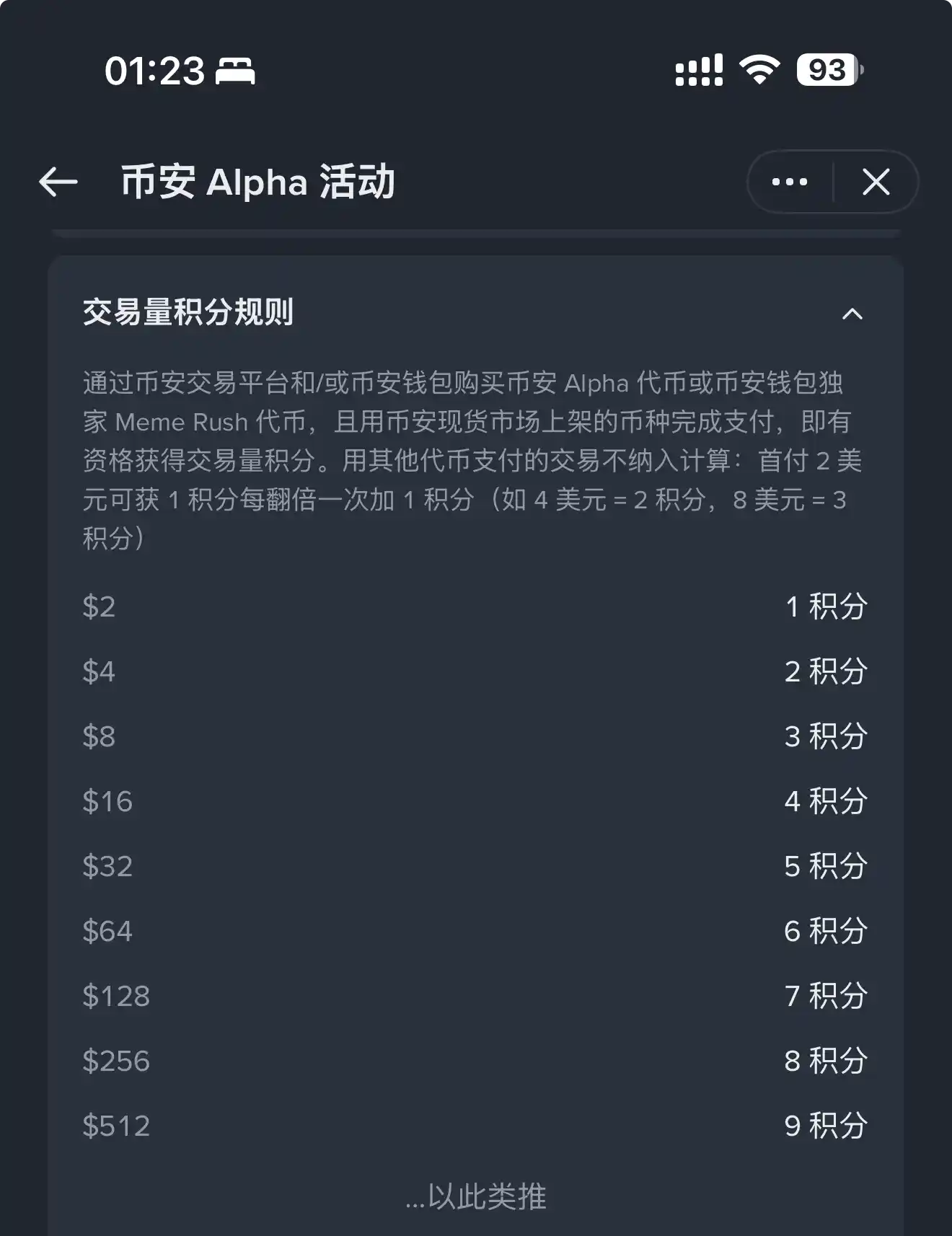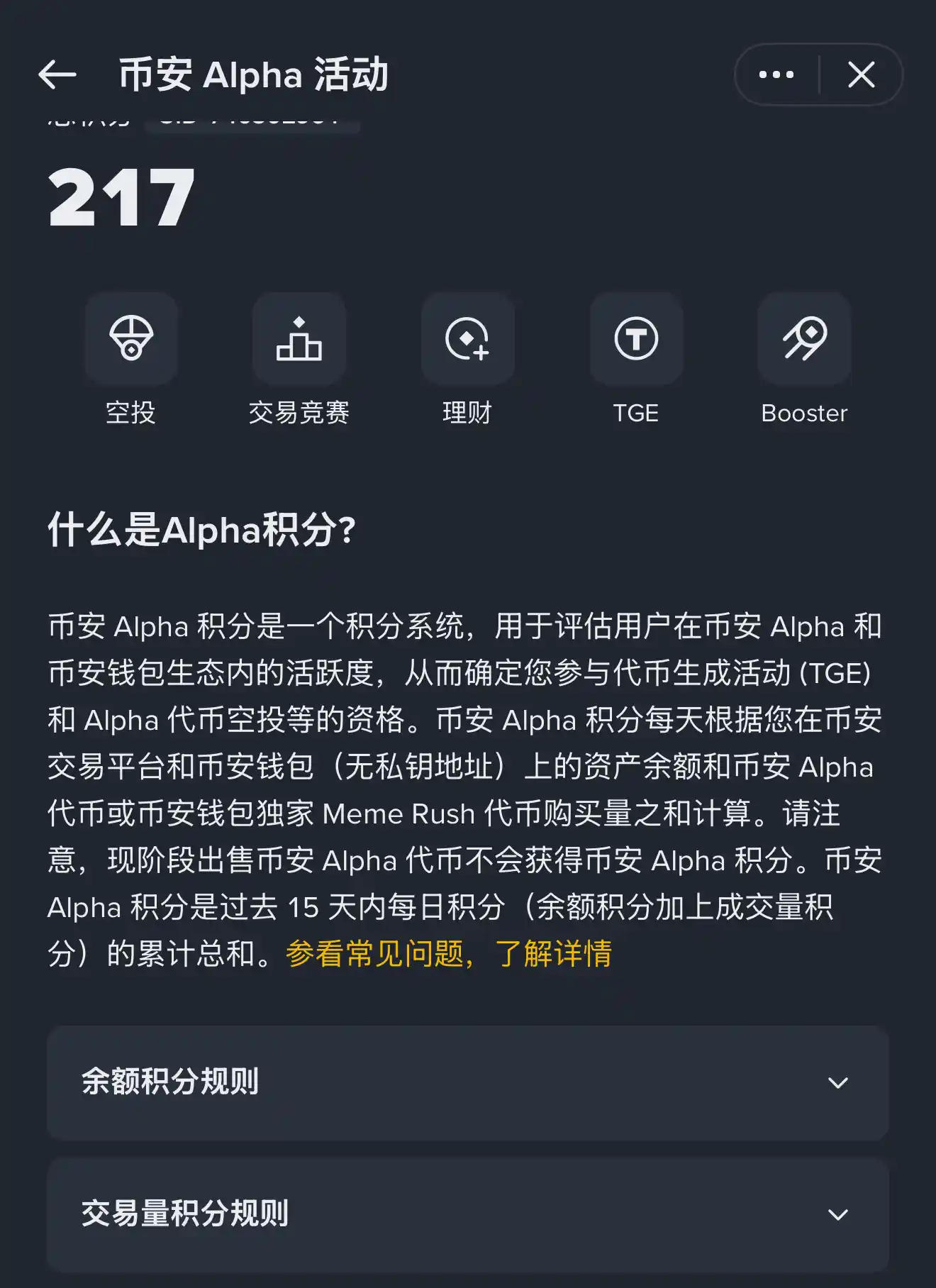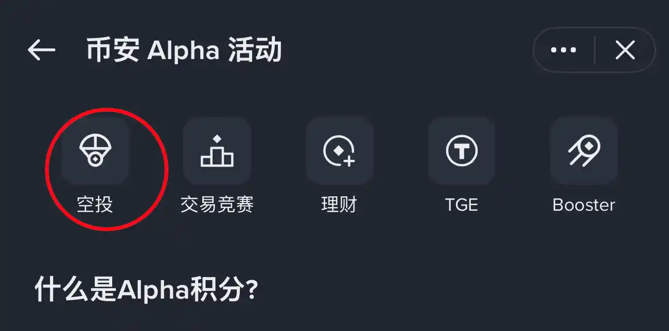 通过交易Alpha代币,获得积分,有满足一定的积分,就能参与抢空投活动。